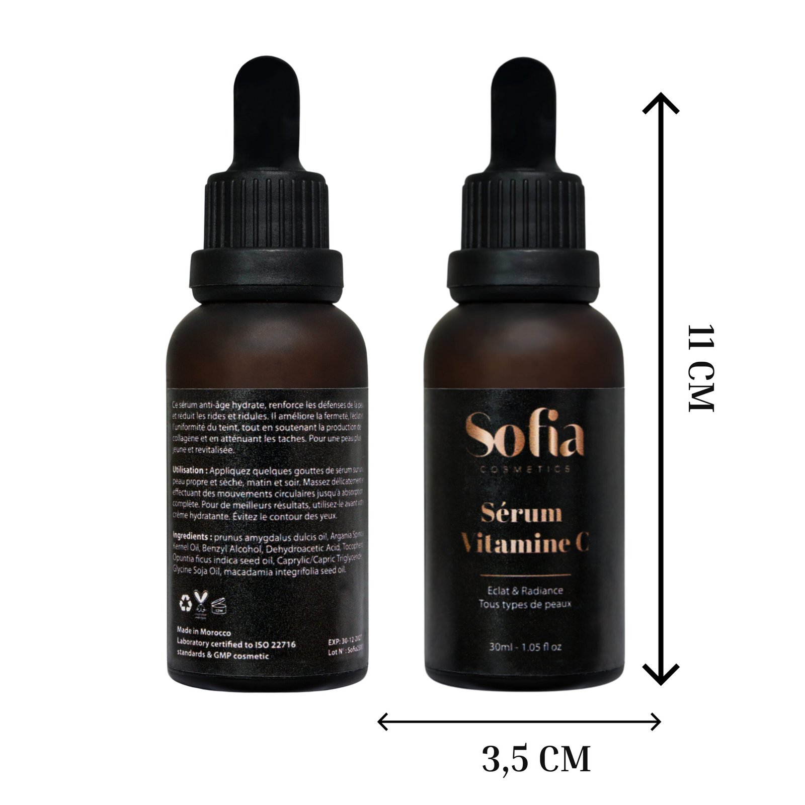 Le Sérum Vitamine C Sofia Cosmetics est un soin anti-âge concentré qui agit pour hydrater, protéger et raviver l’éclat naturel de la peau. Formulé pour tous les types de peau, il renforce les défenses cutanées, réduit l’apparence des rides et ridules, améliore l’élasticité et favorise une meilleure uniformité du teint. Grâce à la vitamine C et à un complexe d’huiles végétales, ce sérum stimule la production de collagène et lutte contre le stress oxydatif pour une peau plus jeune, plus lisse et visiblement revitalisée.